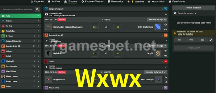O Wxwx oferece uma grande seleção de opções de apostas em e-sports com probabilidades competitivas